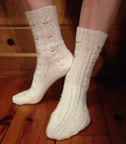 Аня Мелентьева это не у меня это у MoRe варинат лучше оригинала. Насчет бисера/бусин - дырочки даже в больших бисеринах и бусинках маловаты для пряжи, из которой обычно вяжут носки. Так что скорее всего надо пришивать.