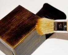4. Затем, выложите немного золотой краски на палитру или картон. Сухой кистью возьмите ее чуть-чуть и разотрите ее о лист бумаги. Когда на кисти почти не останется краски, проведите ею по поверхности коробочки, получится красивый золотой налет. Таким образом, покрасьте всю коробочку, уделяя особое внимания сгибам, на них нанесите немного больше краски, чем на поверхности.
