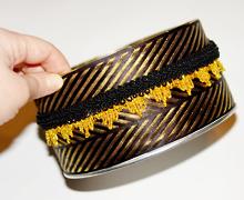 2. Коробку обклейте тесьмой так, чтобы она закрыла всю ее боковую поверхность. Работайте суперклеем или термоклеем. Верхнюю тесьму приклеивайте при закрытой крышке, иначе коробка будет плохо закрываться.