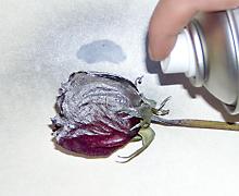1. Засушенный цветок покройте серебряной краской и подождите, когда она высохнет.