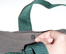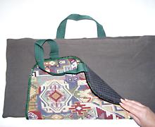 2. Выверните деталь на изнанку и проложите шов по срезам, у вас получится прямоугольный "мешочек". К меньшим сторонам коврика симметрично пришейте две ручки из строп.
