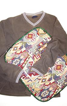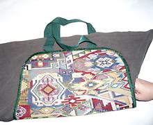 Сумочка из коврика и джемпераИнтересное решение: соединить коврик со старым джемпером. В результате получается оригинальная и функциональная сумка. Тут и от старого джемпера избавитесь и понравившийся рисунок коврика используете!