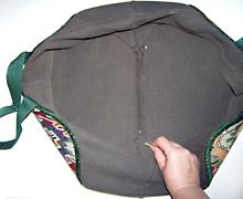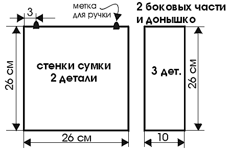 5. Разложите сумку на столе. Вправьте нижние углы вовнутрь сумки и, раскрыв ее, пришейте уголки к донышку закрепочными стежками.