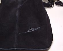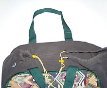 2. По верхнему краю сумки вручную пришейте тесьму, в один или несколько рядов так, чтобы она полностью закрыла имеющейся деффект.