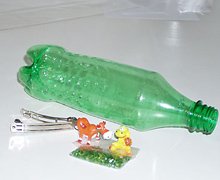 Вам понадобятся: заколка-автомат, пластиковая бутылка, бисер и две маленькие фигурки зверей.