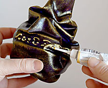 4. Краской темного цвета окрасьте бутылку, тщательно прокрашивая все складочки.