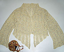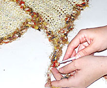 5. Обвяжите все срезы свитера крючком, столбиками с накидом. Причем петли старайтесь вытягивать достаточно длинные, чтобы не затянуть изделие.