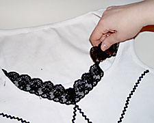 3. Если горизонтальные стыки тесьмы получились не очень аккуратными, закройте их, приклеив тонкую полоску тесьмы или шнура.