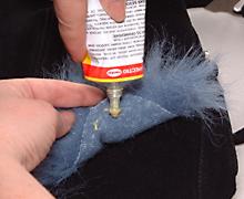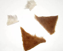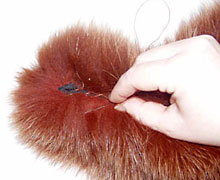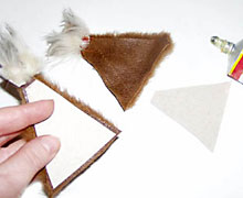 5. Вырежьте из меха треугольники для ушек и пришейте к ним небольшие кисточки.