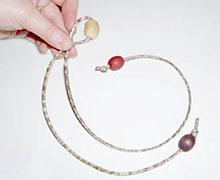 9. Для завязок и отделки пояса возьмите любой шнур и бусины (лучше крупные). Здесь использованы окрашенные деревянные шарики от коврика для автомобильного сидения.