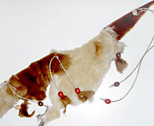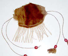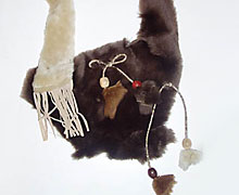 11. Манжеты сделаны из кусочков меха и бахромы, завязки тоже: шнур с бусинами и "кисточками" из остатков меха.