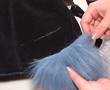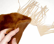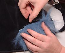 8. Для пояса вырежьте произвольные кусочки меха и пришейте их внахлест друг на друга. Если не получится на швейной машине, сделайте это вручную.