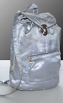 Рюкзачок на синтепоне1. Чтобы такой молодежный рюкзачок держал форму, необходимо ткань простегать со слоем синтепона. Верхний клапан застегивается на застежку от старой сумки.