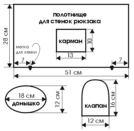 2 лямки по 80 - 100 х 5 см без припусков на швы.